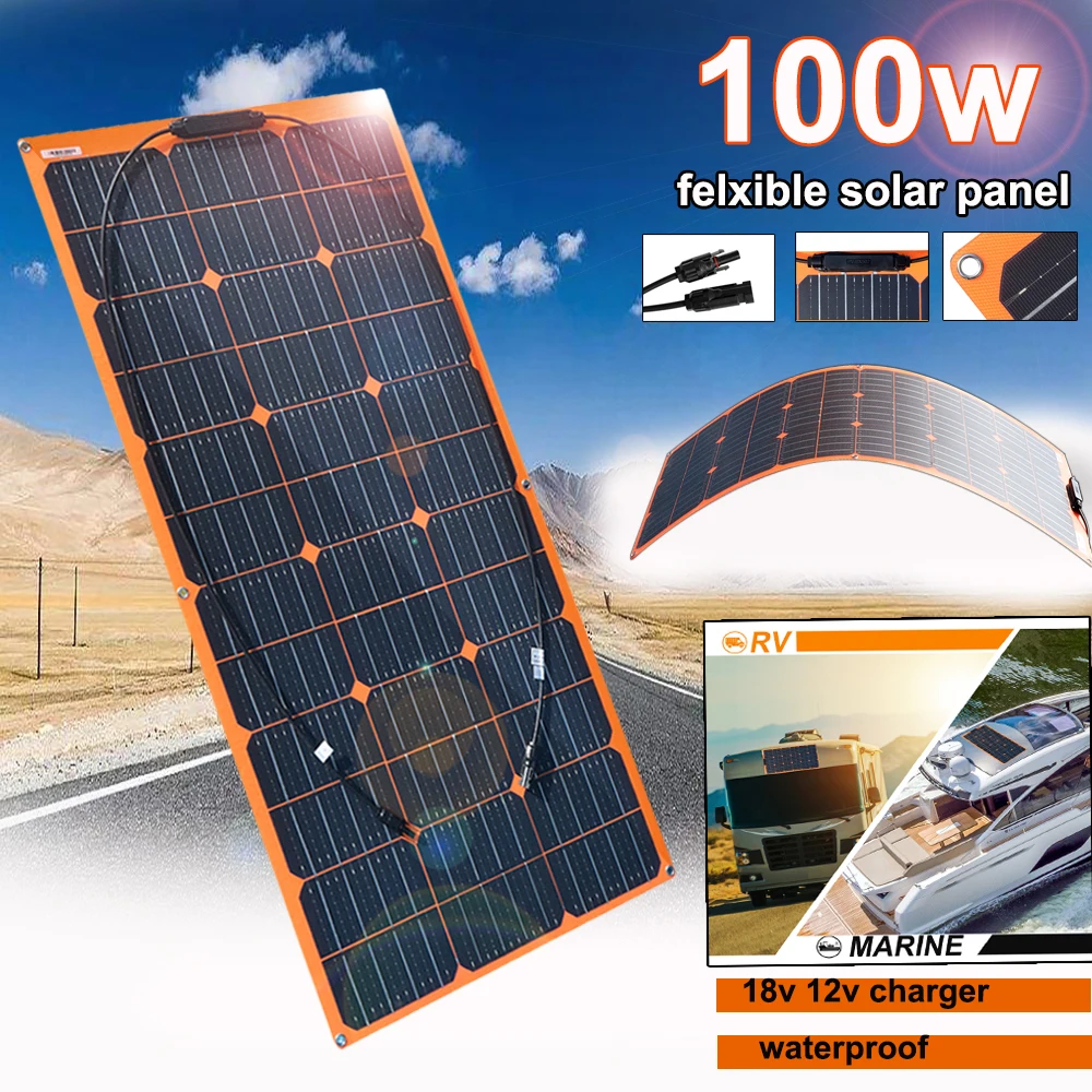 Special Offer Panel Surya Fleksibel 100W 18V 12V Pengisi Daya Surya Monokristalin Untuk 1000W Sistem Perlengkapan Rumah Mobil RV Perahu Pengisi Daya Baterai Tahan Air Discount (17%OFF) Today!