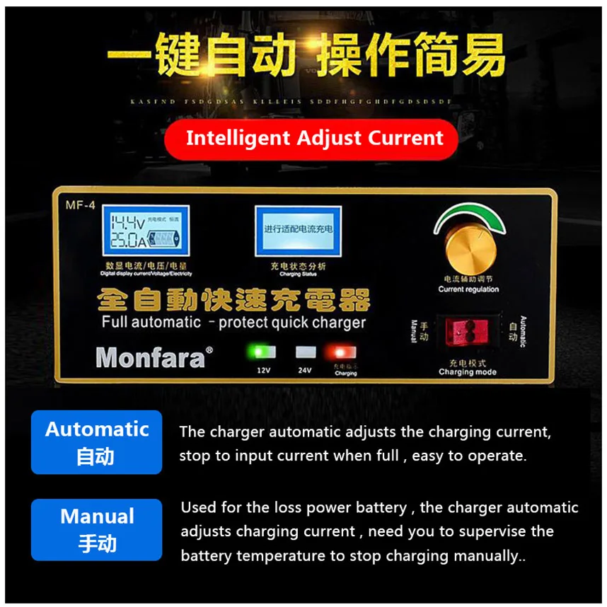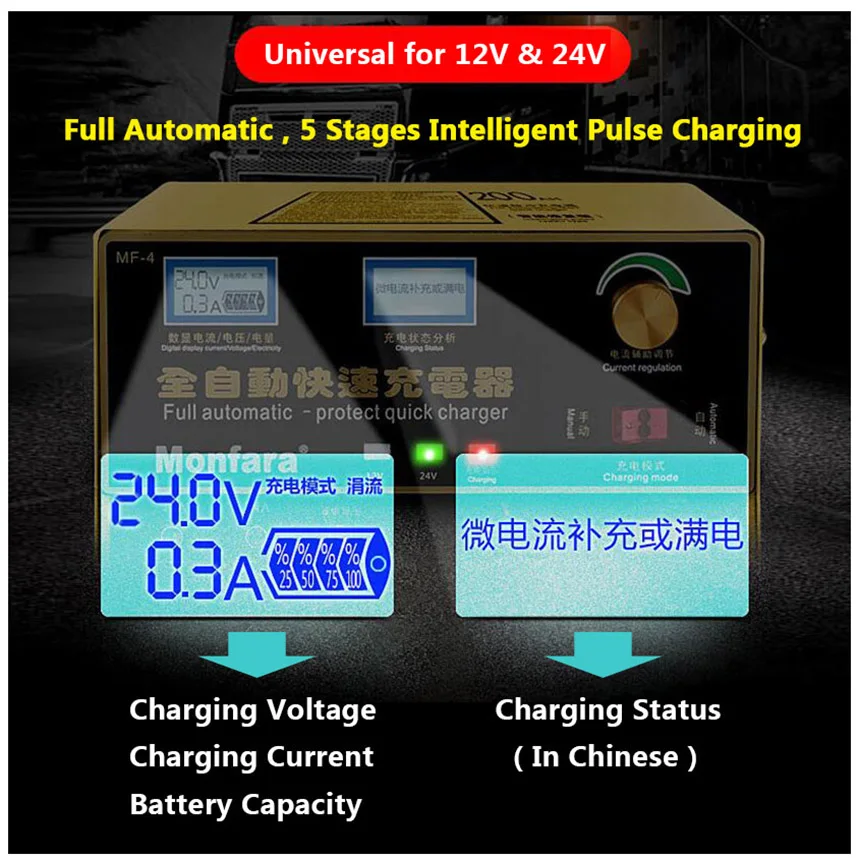 Product Name: Pengisi Daya Baterai Sepeda Motor Mobil Listrik Universal 12V 24V Perahu Truk Sepeda Roda Tiga Untuk Penyimpanan GEL AGM Asam Timbal 100AH 200AH 400AH