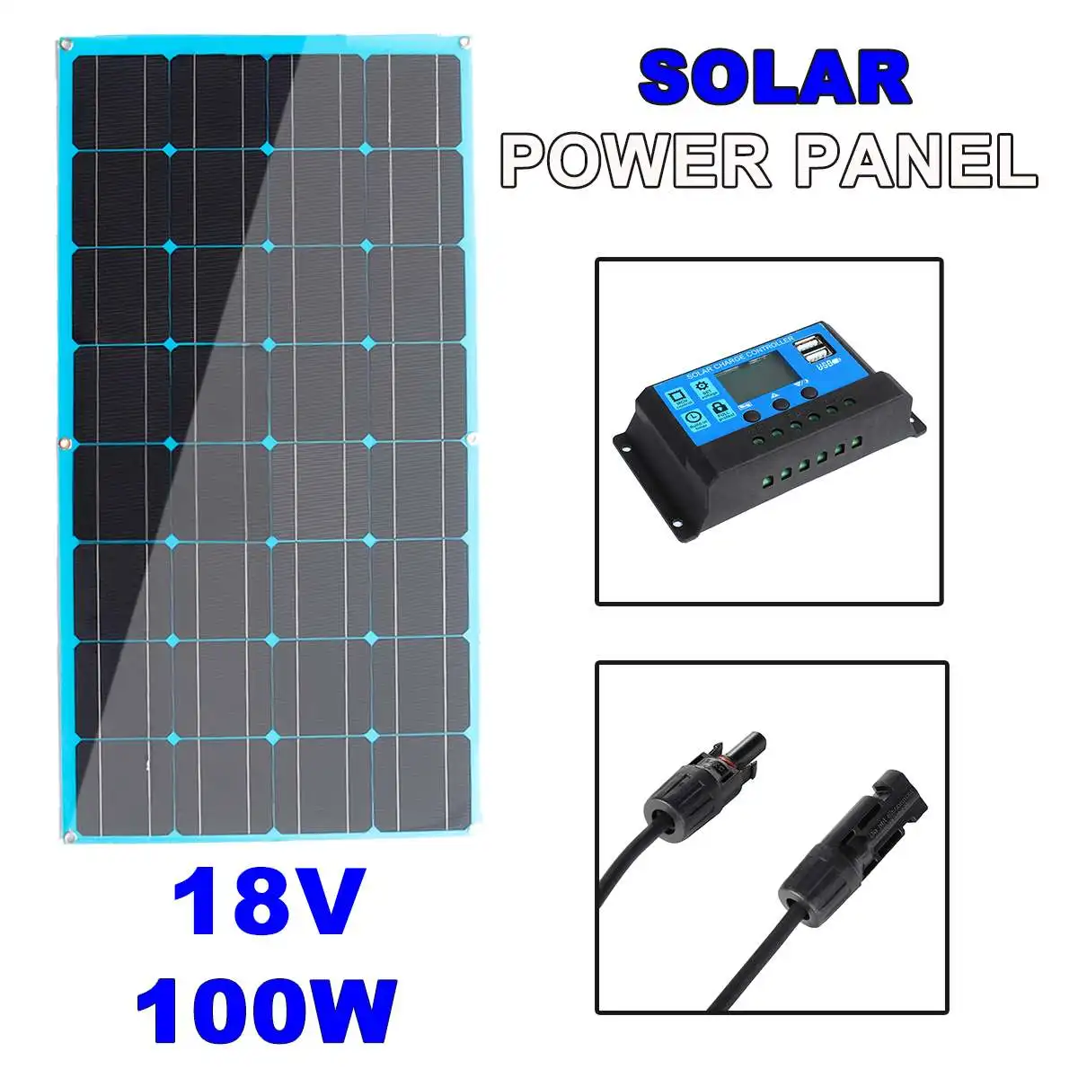 Product Name: Panel Surya 100W 18V Dengan Pengendali 50A DC & USB Sel Surya Tahan Air Sel Surya Poli Untuk Pengisi Daya Baterai RV Kapal Pesiar Mobil