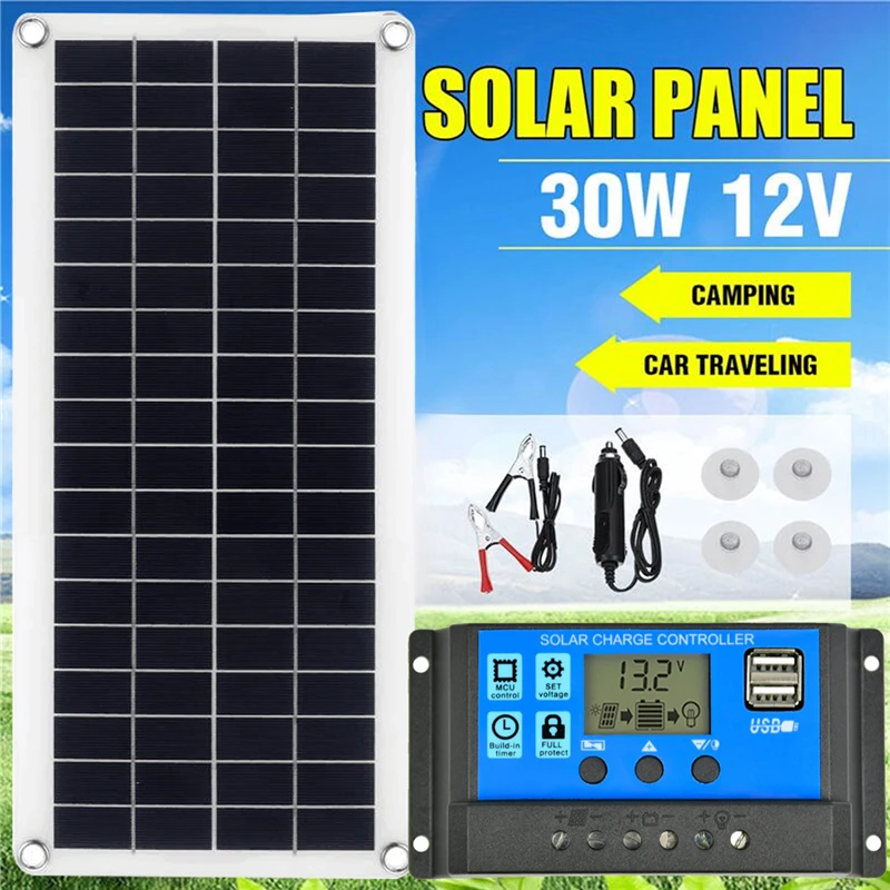 Special Offer Pengisi Daya Baterai Panel Surya 30W Kit USB Ponsel Pintar Sel Surya Lengkap Bank Daya Fleksibel Portabel Mobil Berkemah Dapat Diisi Ulang Discount (27%OFF) Today!