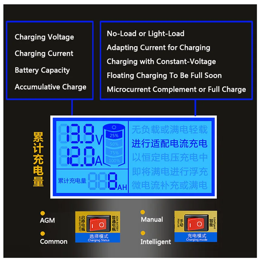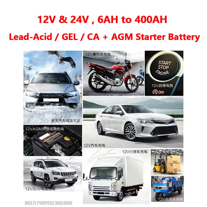 Product Name: Pengisi Daya Baterai Starter AGM Jump Sepeda Motor Mobil 12 V 24 V Layar LCD 12 V 24 Volt Pengisi Daya Baterai GEL Kalsium CA Asam Timbal