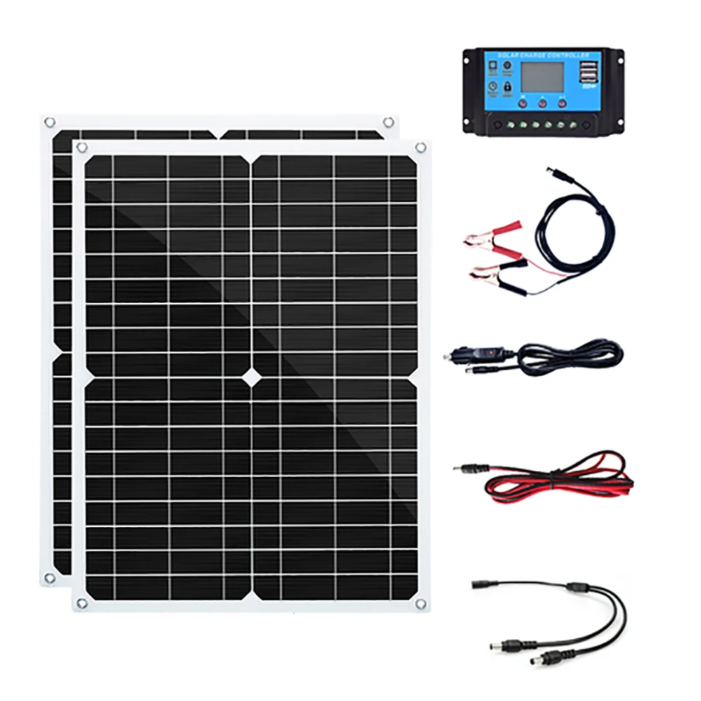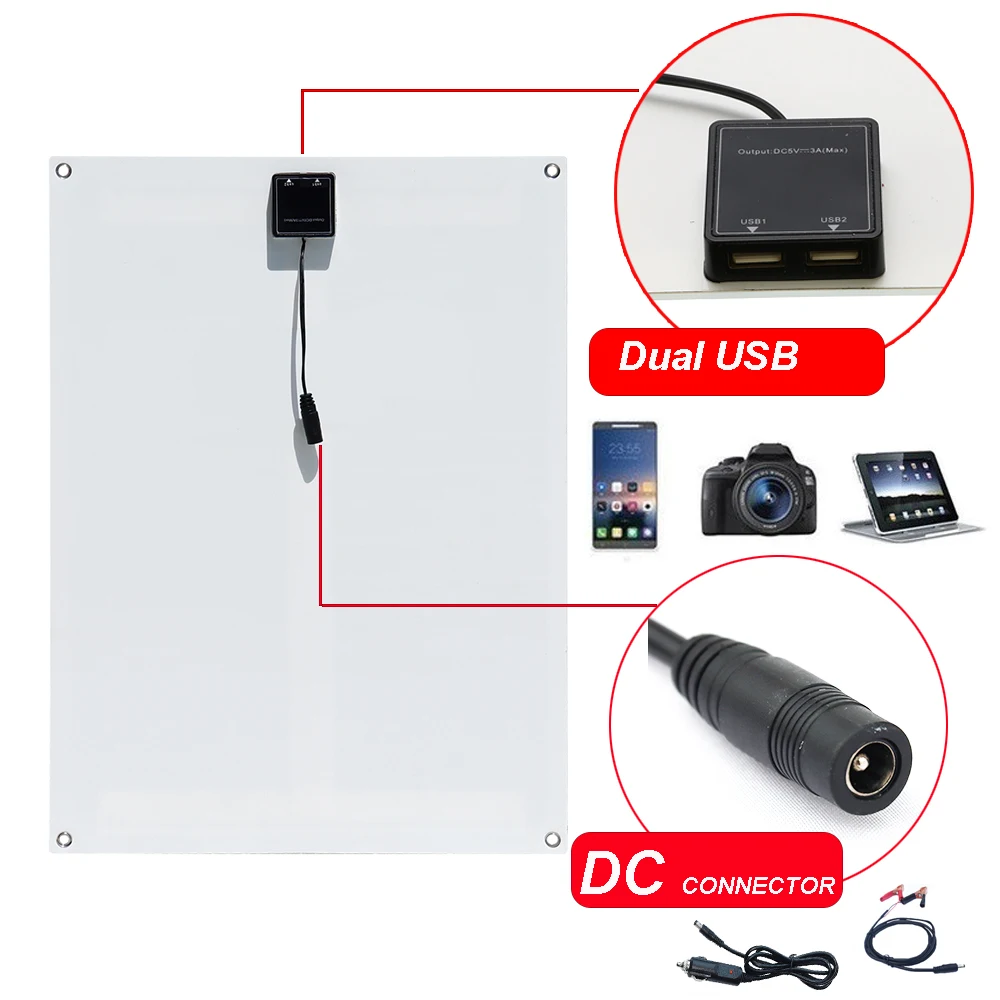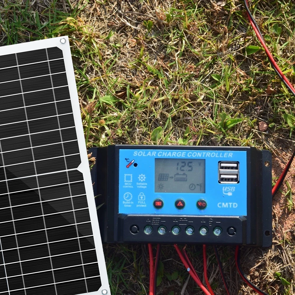 Product Name: Panel Surya 12V 5V USB 30W Kit Pengisi Daya Powerbank Baterai Mobil Ponsel Surya Lengkap Untuk RV Berkemah Luar Ruangan Rumah Tahan Air