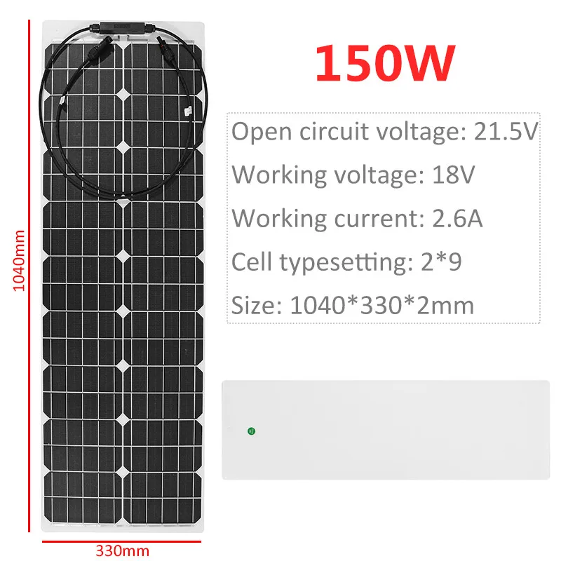Product Name: Panel Surya 300W/150W 18V Sel Surya Monokristalin Semi Fleksibel Tahan Air Luar Ruangan Mobil Kit Sistem Pengisi Daya Baterai RV