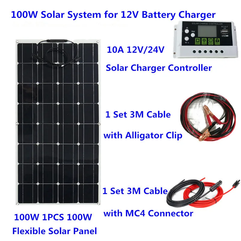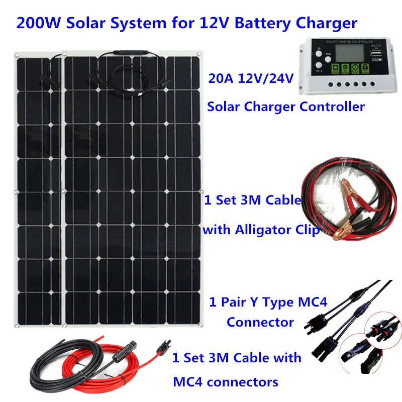 Product Name: 200W Panel Surya Fleksibel Sistem 20A Solar Controller 3M Solar Kabel 12V 24V Solar Charger Baterai Untuk Berkemah/Rumah Atap/Mobil