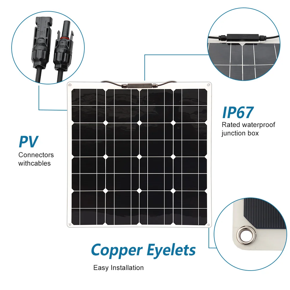 Product Name: 50W Panel Surya 12V Pengisi Daya Baterai 10A 10A 40A Pengendali Sistem Fotovoltaik Monokristalin Untuk Mobil Perahu RV Van Berkemah