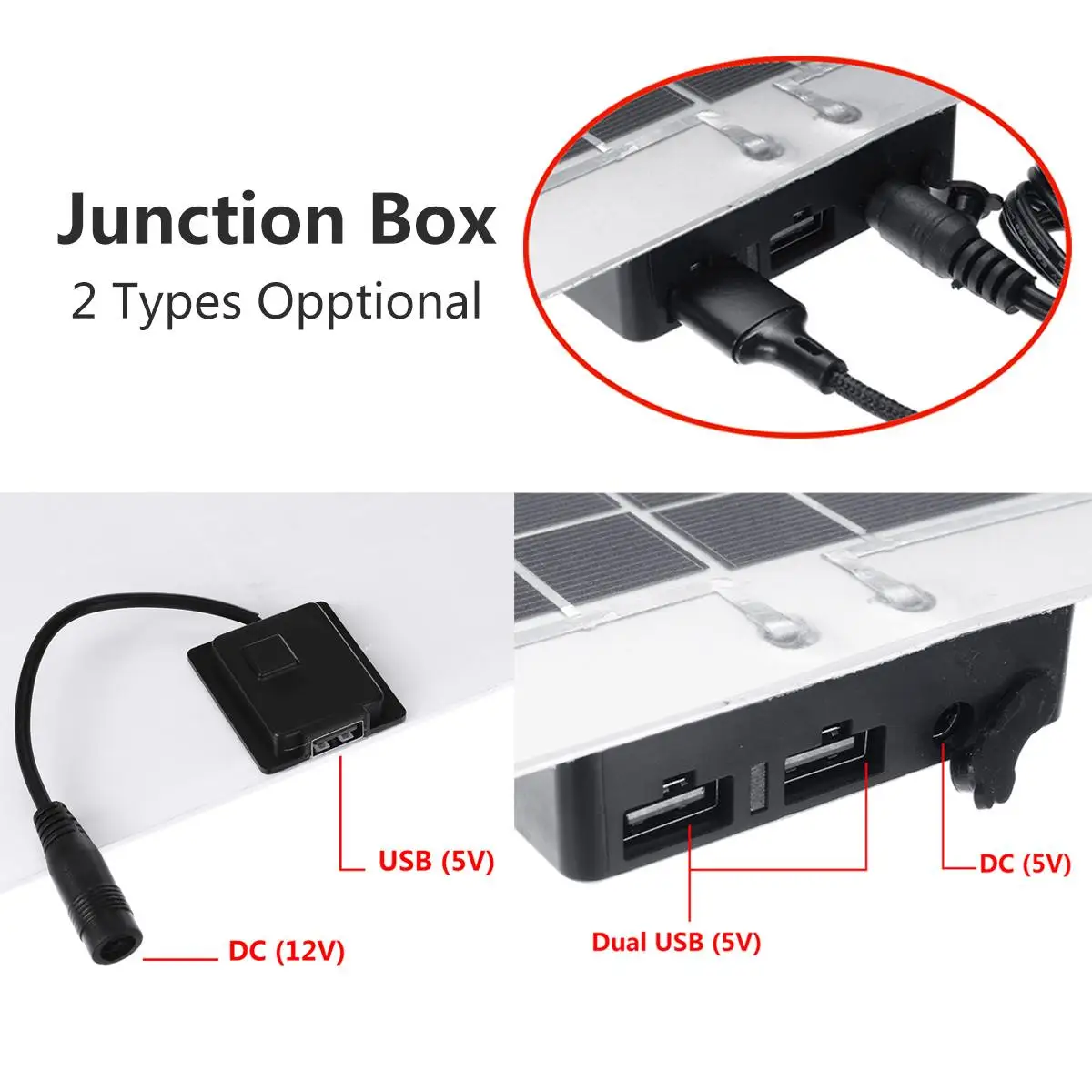 Product Name: 250W 18V Panel Surya Mono Dual USB 12V/5V DC Pengisi Daya Surya Fleksibel Monokristalin Untuk Mobil RV Perahu Pengisi Daya Baterai Grosir