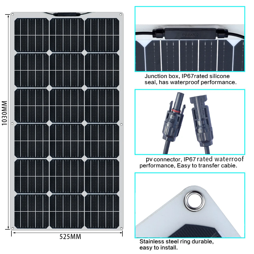 Product Name: Fleksibel Portabel Solar Panel 100 W 200 W 12V Battery Charger Rumah Kit Mono Untuk Perjalanan Berkemah PV RV Mobil Perahu 1000 W Sistem Luar Negeri