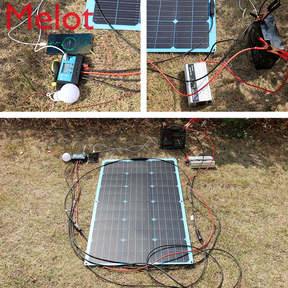 Product Name: Panel Surya 12V 100W 200W Kit Fleksibel Pengisi Daya Sel Surya Sistem Rumah Fotovoltaik Untuk Baterai 12V 24V Perahu Mobil Berkemah PV 1000W